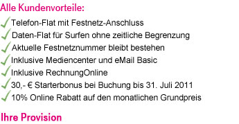 Sie erhalten diesen Newsletter, weil Sie Teilnehmer des Telekom Festnetz, Internet & TV Partnerprogramms bei Zanox sind. Falls Sie keine Newsletter mehr erhalten möchten, können Sie diese jederzeit bei Zanox unter Kontaktinformationen - Betreiberberichte abbestellen.